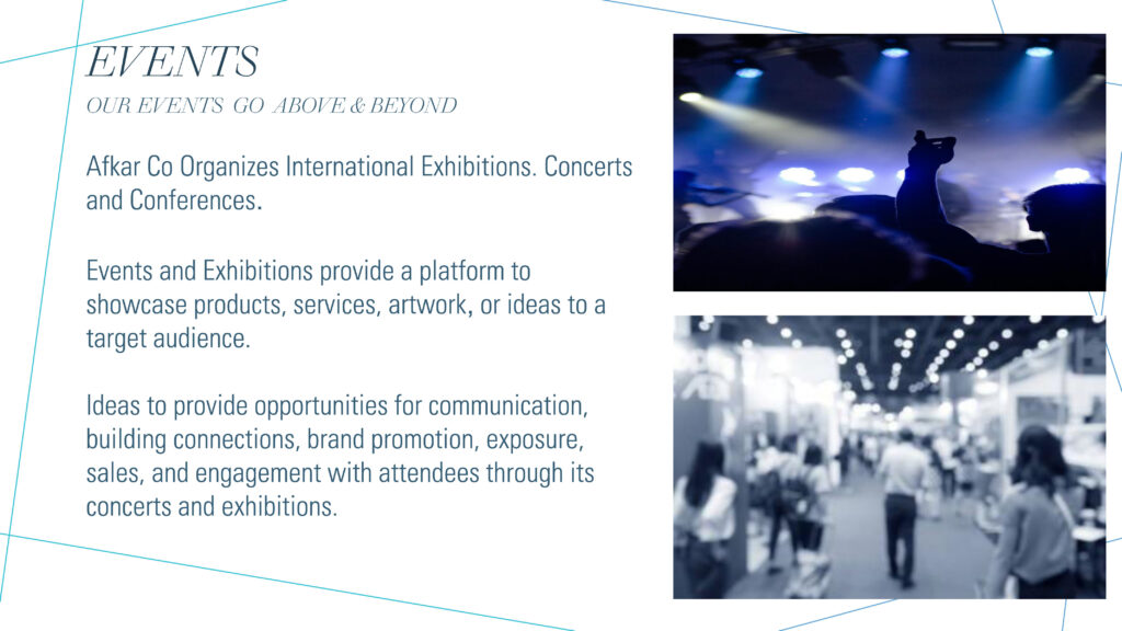 Events and Exhibitions provide a platform to showcase products, services, artwork, or ideas to a target audience. Ideas to provide opportunities for communication, building connections, brand promotion,